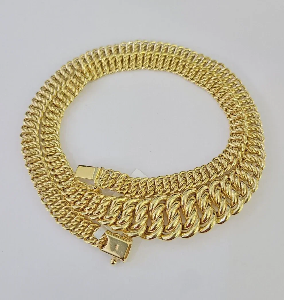 Oro de 10k semisolida, la gargantilla pesa 12.20 gramos 1.460 y la manilla 6.49 gramos $790 si compran el juego tiene un descuento de $100.00 ,El costo de envio puede variar dependiendo el lugar , hacemos la entrega personalizadas en las el estado de la Florida , especificamente en Orlando , Kissimee , Poinciana , Davenport , Saint Cloud , Clermont , Miami y todos sus alrededores .Fuera de estos lugares las entregas seran en la mano del comprador. Por favor pongase en contacto con el vendedor antes de realizar la compra para recibir especificaciones mas detalladas
